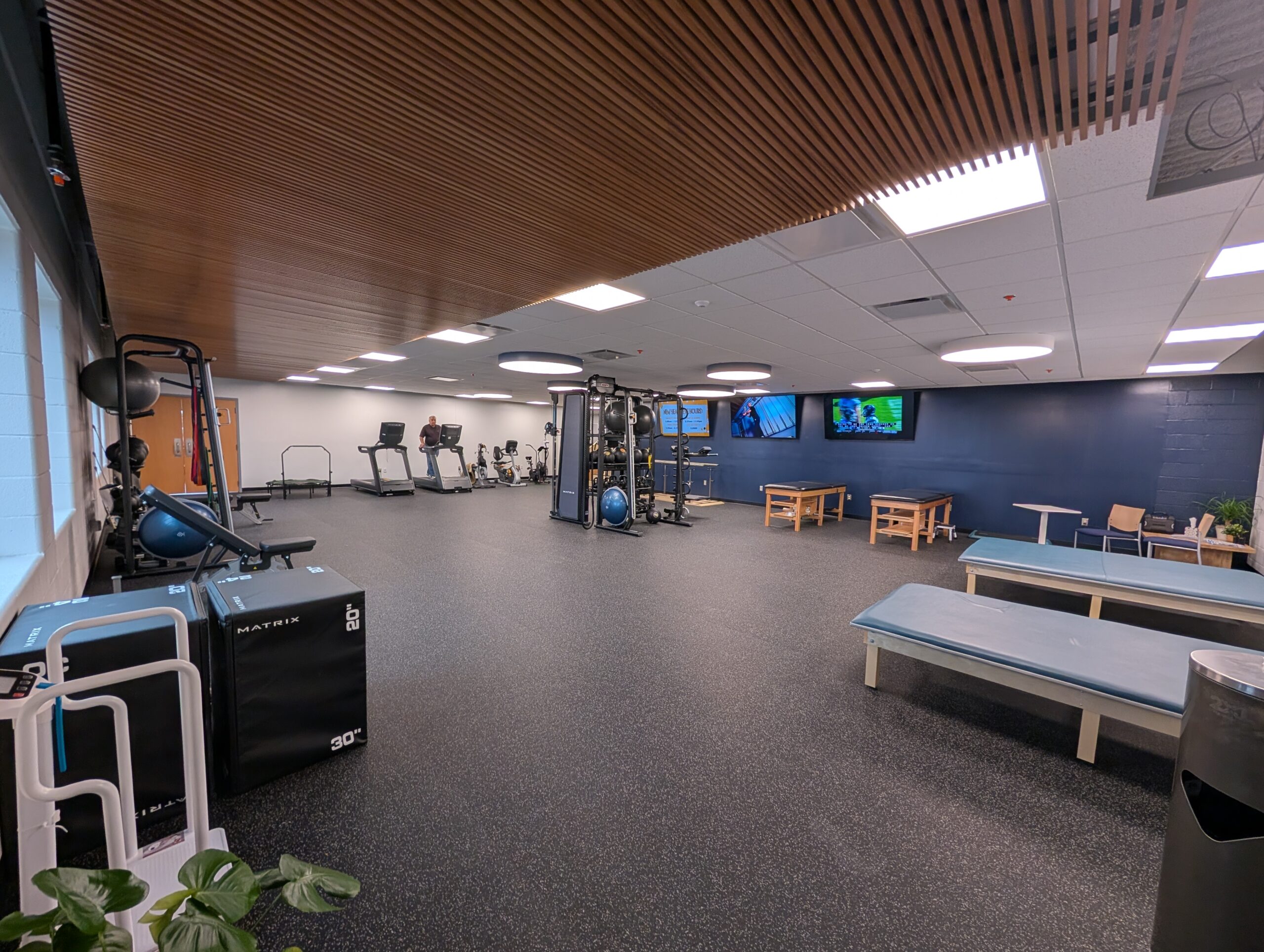 Whether you’re on the road to recovery or have recently completed rehabilitation, this thoughtfully designed space supports you in continuing your rehab exercises with confidence.